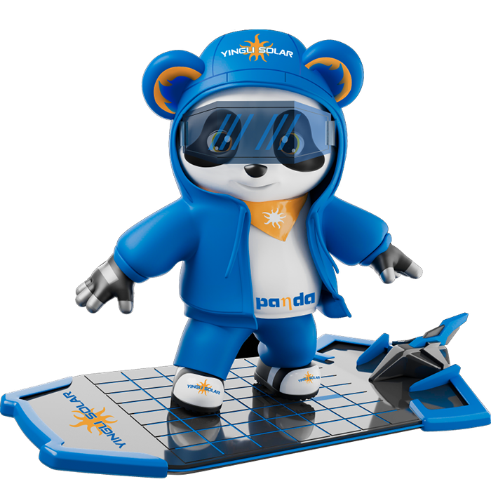 此款吉祥物為產品型,代表的是熊貓產品可拓展應用于更多的場景,光伏在新技術領域的不斷探索,以及在極端環境中光伏應用的無限可能與想象。