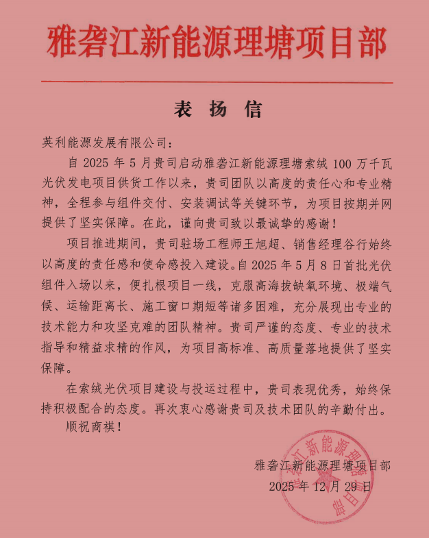 2025年12月31日,世界最大水光互補項目重要一環——索絨光伏電站順利并網,項目使用了406MWMG冰球突破高效組件,為2026年開年增添強勁綠色動能。